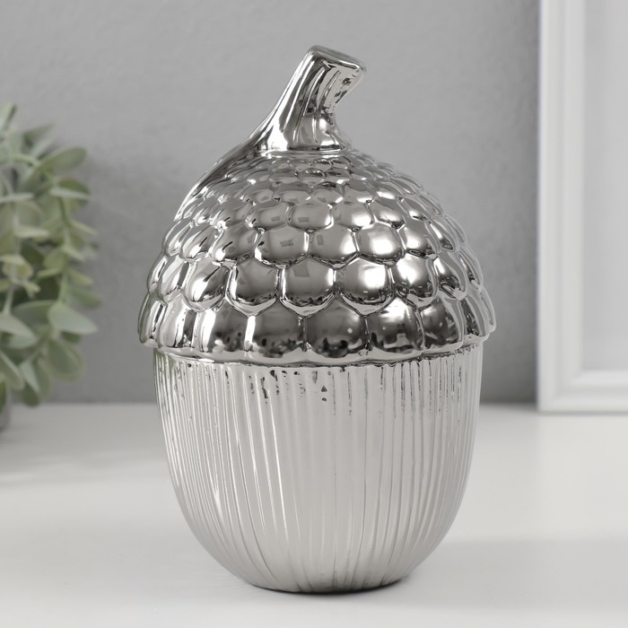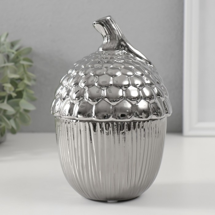 Шкатулка керамика "Жёлудь" серебро 12х12х18 см
