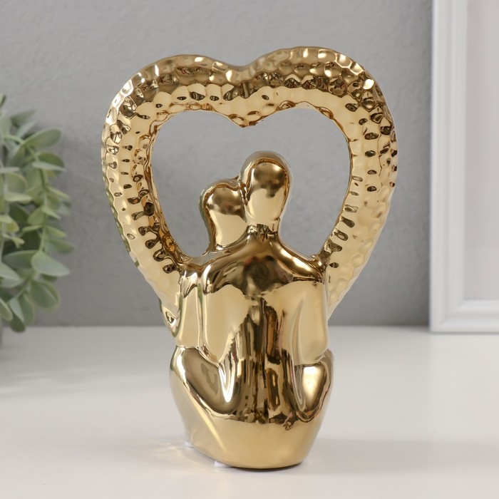 Сувенир керамика "Абстракция. Влюблённые с сердцем" золото 13х7х18,5 см