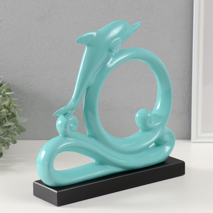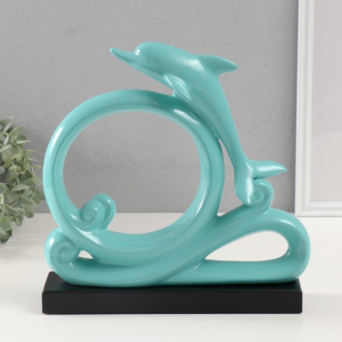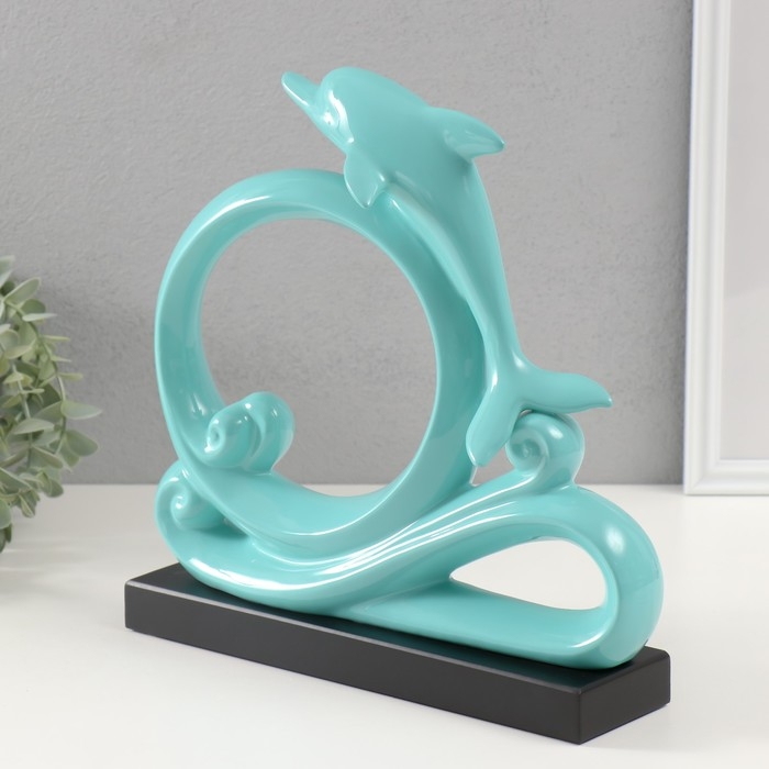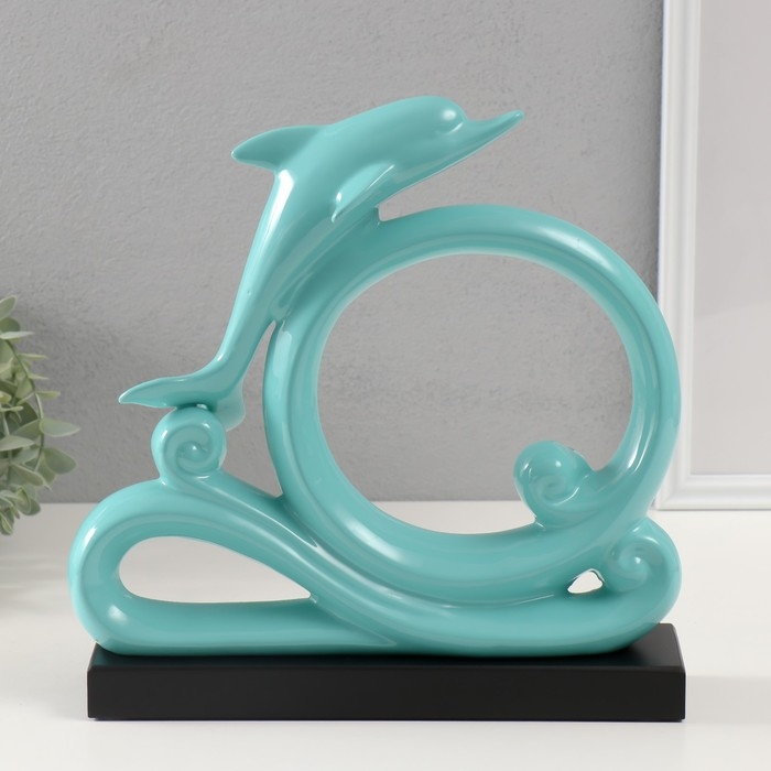 Сувенир керамика "Дельфин на волнах" бирюзовый 7,5х27,5х27 см