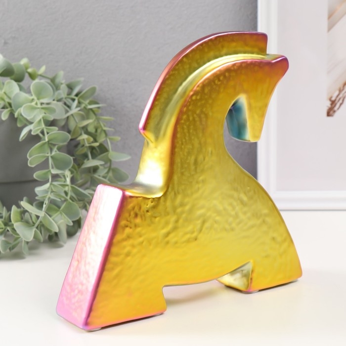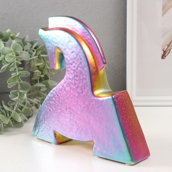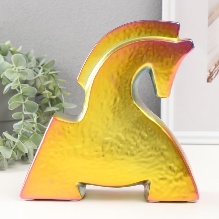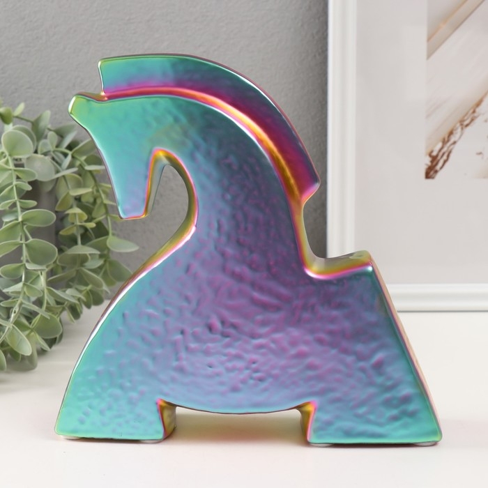 Сувенир керамика "Склонившийся конь" зеленый хамелеон 5х20,5х20,5 см
