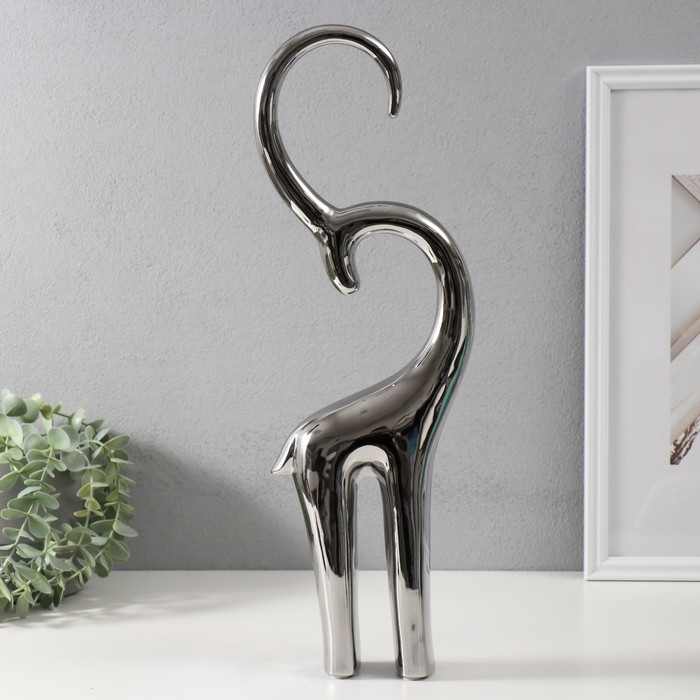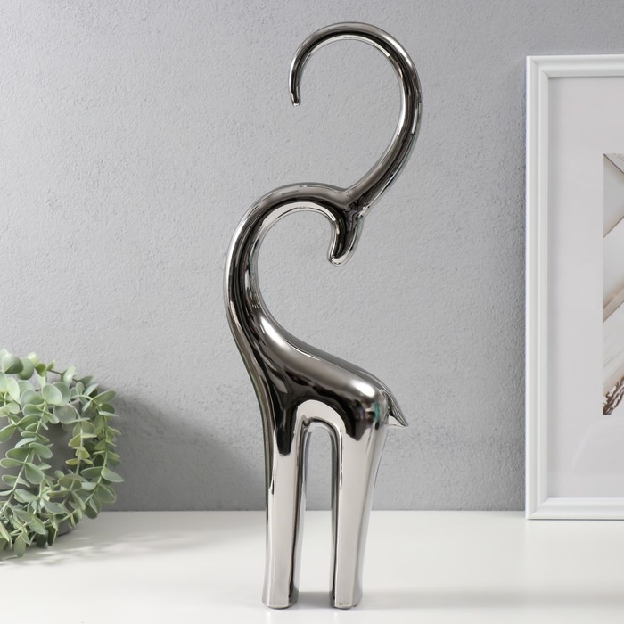 Сувенир керамика "Антилопа" серебро 6х13х47,5 см
