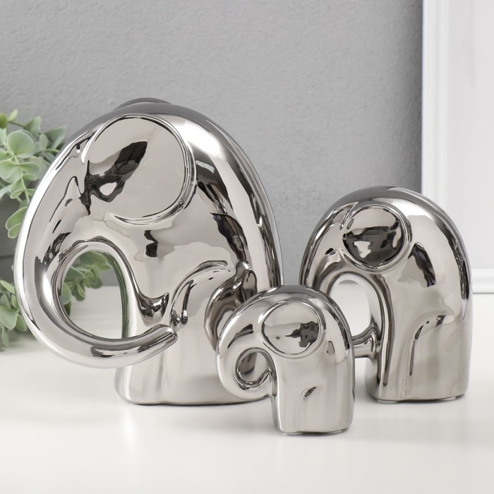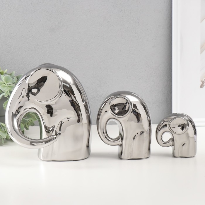 Сувенир керамика "Семья" серебро, набор 3 шт 11х16,5х19 см, 11,5х6х13,5 см, 4,5х7,5х8 см