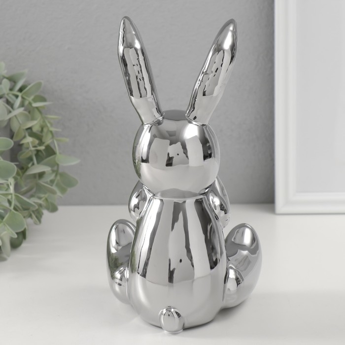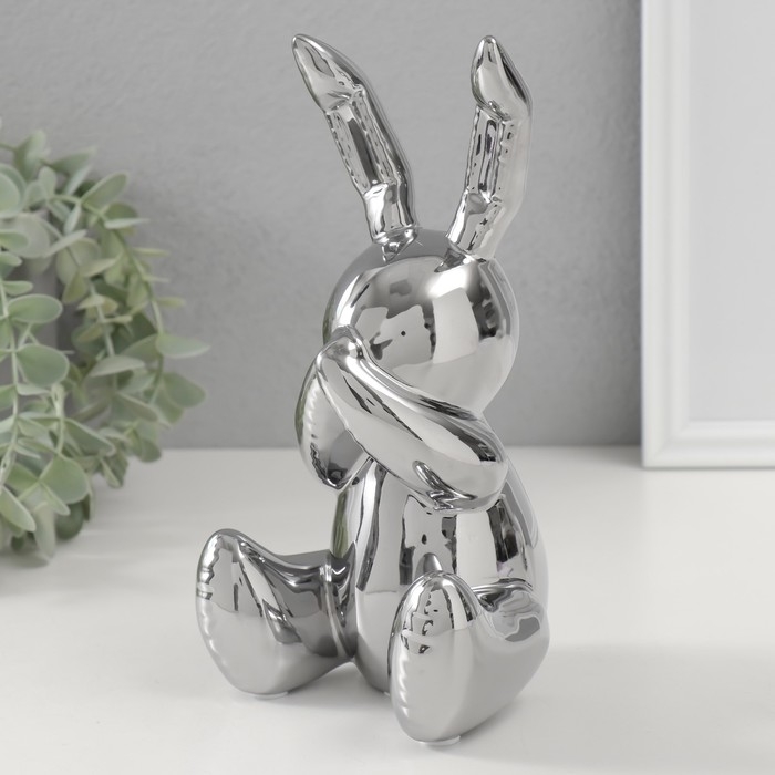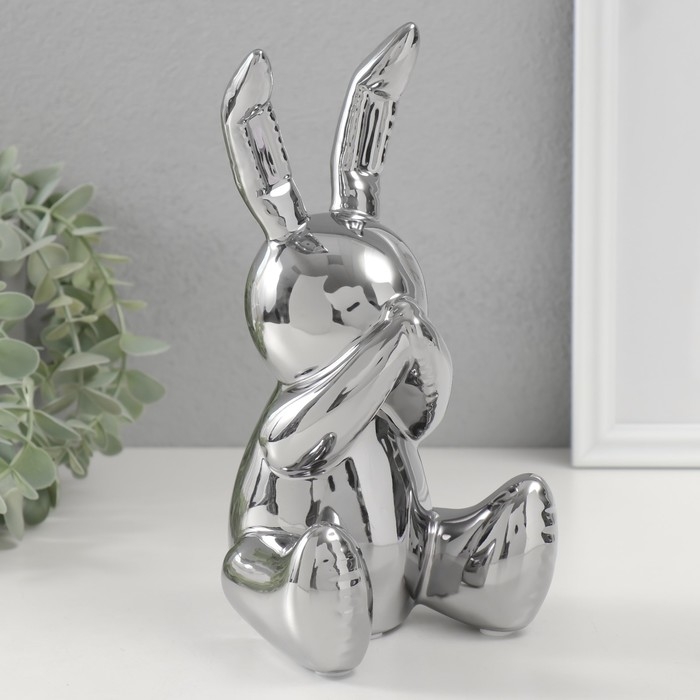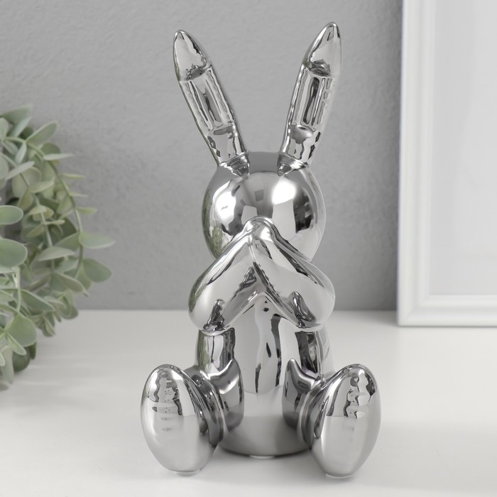 Сувенир керамика "Зайка спрятал носик" серебро 11х12х22 см