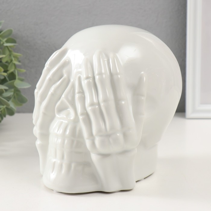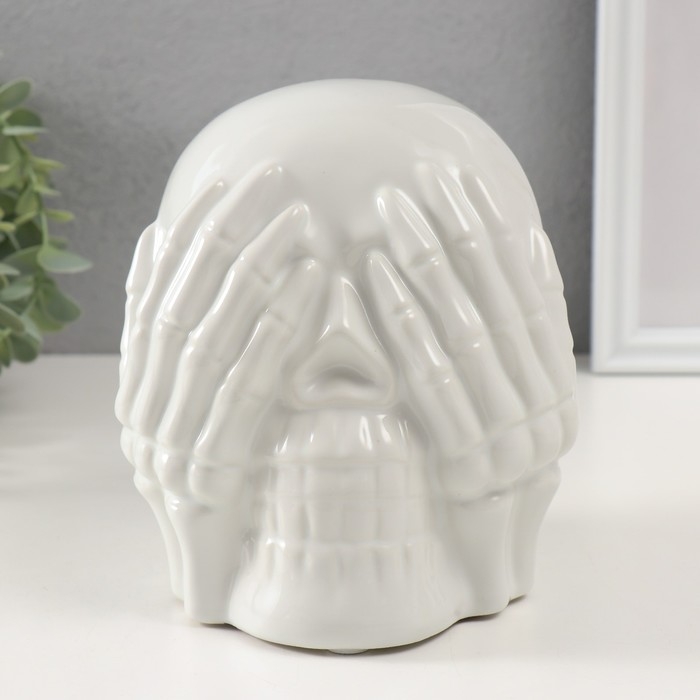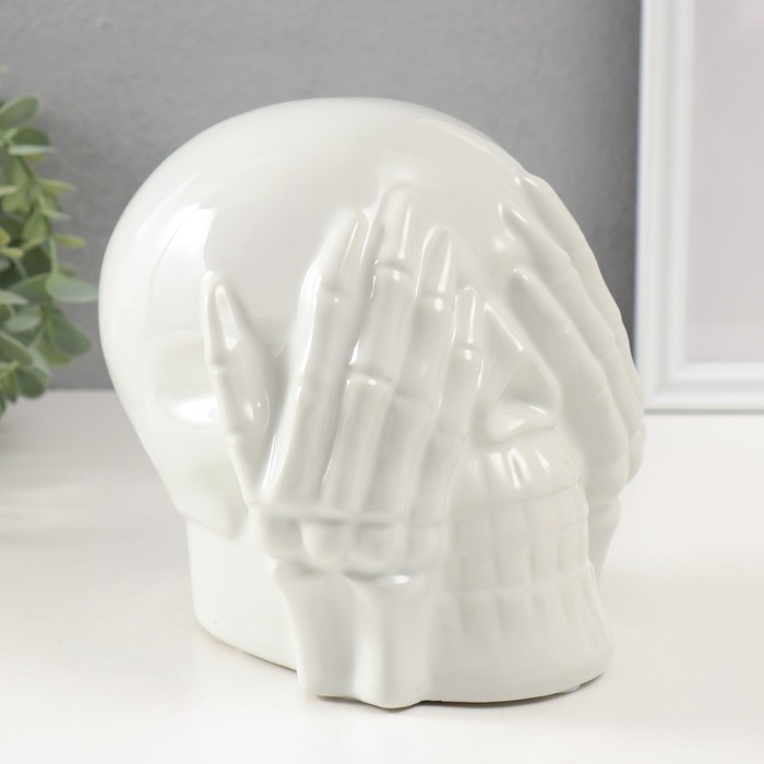 Сувенир керамика "Череп с кистями на глазах" белый 13,5х14х15 см