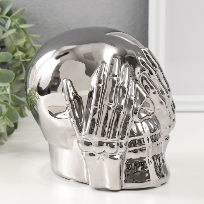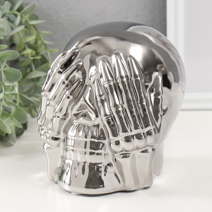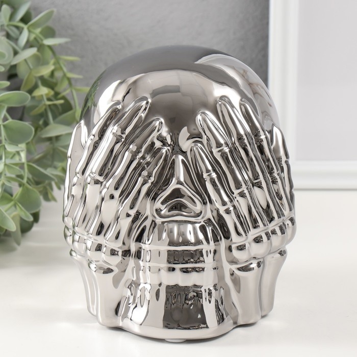 Сувенир керамика "Череп с кистями на глазах" серебро 13,5х14х15 см