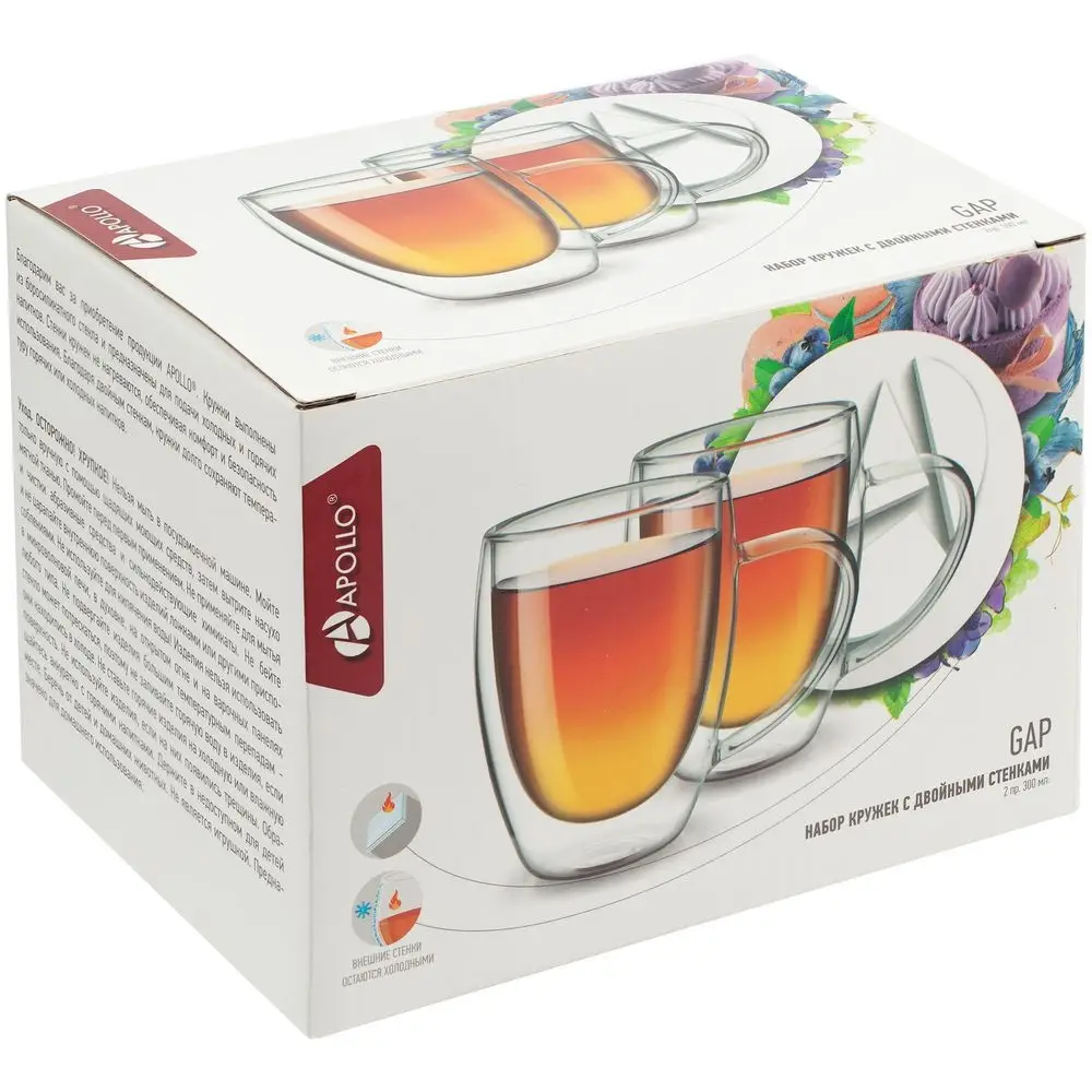 Кружки выполнены из боросиликатного стекла и предназначены для подачи холодных и горячих напитков. Стенки кружек не нагреваются, обеспечивая комфорт и безопасность использования.В наборе 2 кружки. Емкость 300 мл.