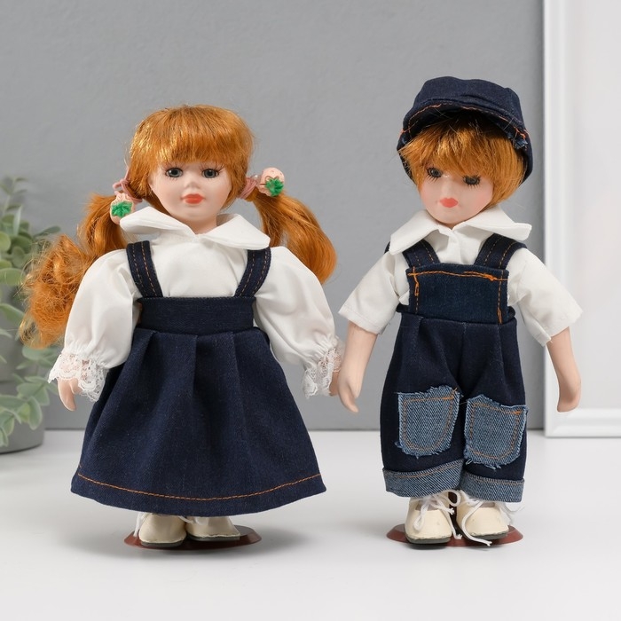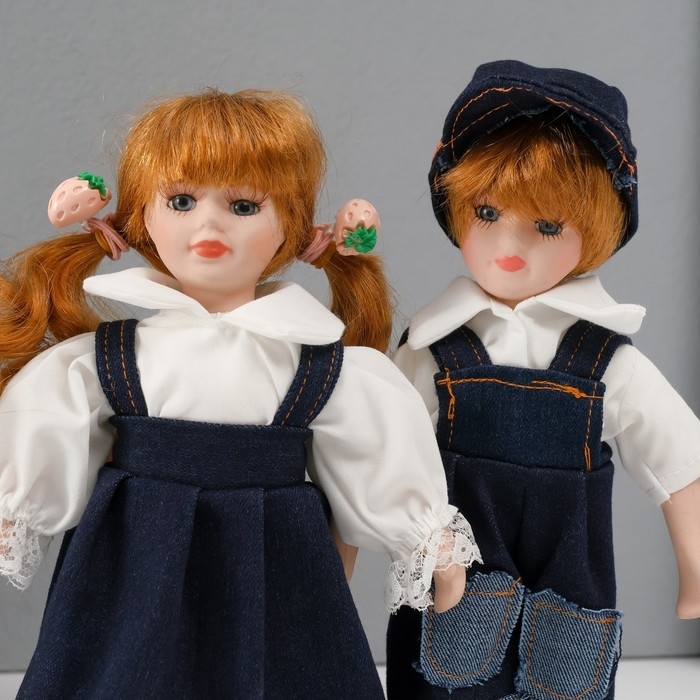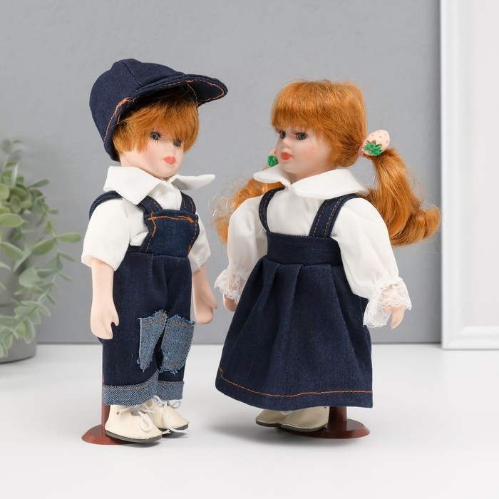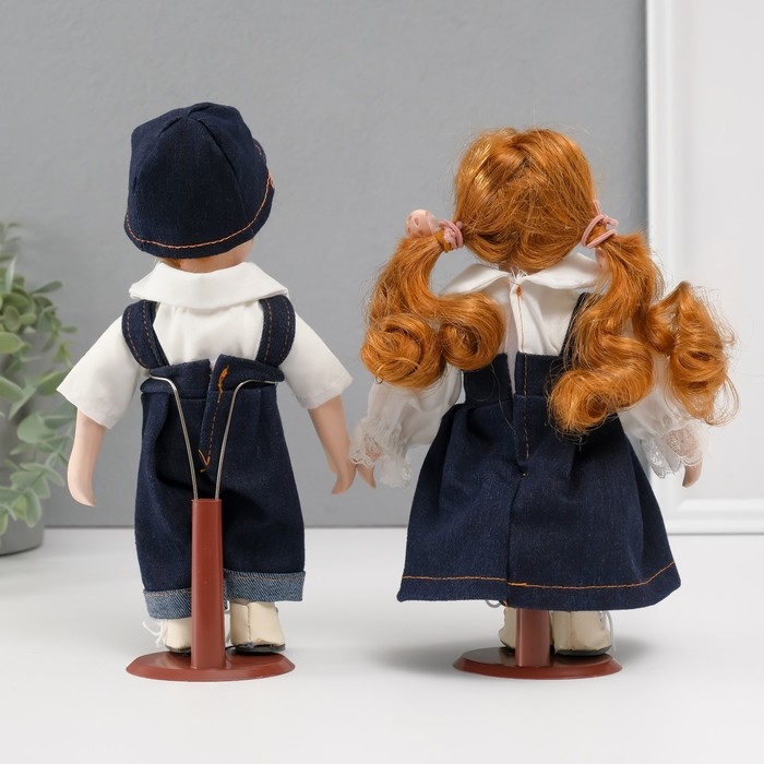 Кукла коллекционная парочка "Оля и Слава, джинсовый наряд" набор 2 шт 19 см