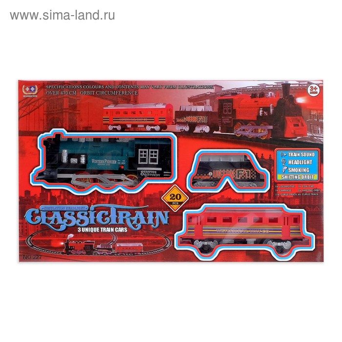 Железная дорога «Классический поезд», свет и звук, с дымом, работает от батареек, цвета МИКС
