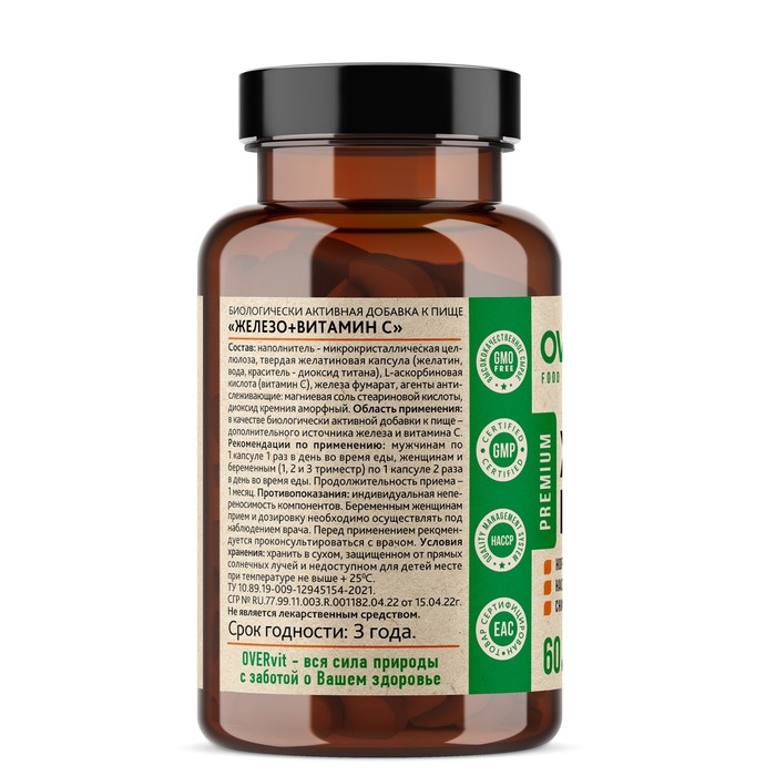 Железо содержится в форме железа фумарат, что является биодоступной формой железа с высокой усвояемостью.