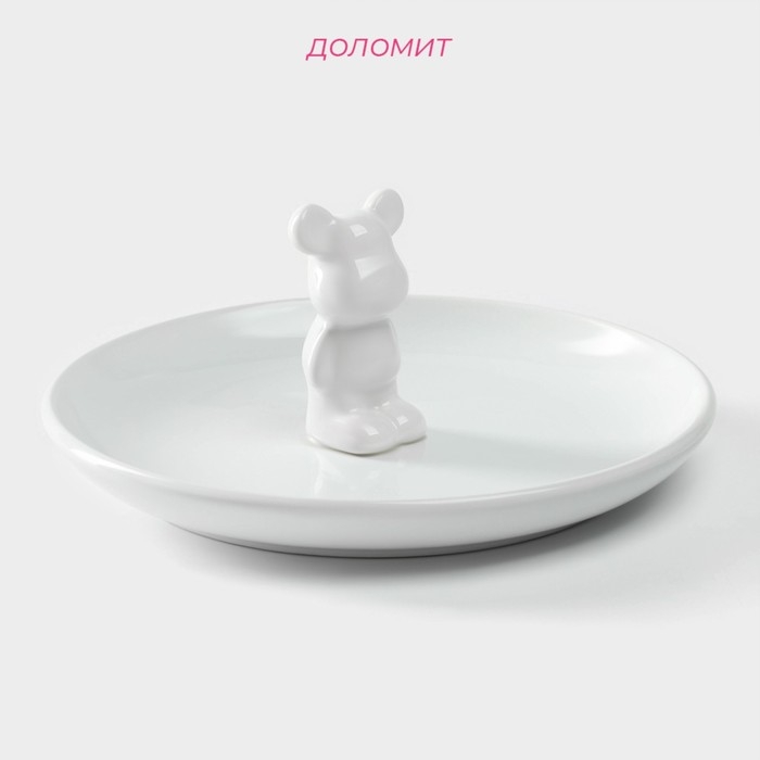 Тарелка керамическая Доляна «Мишка Отто», 20,5×9 см, цвет белый