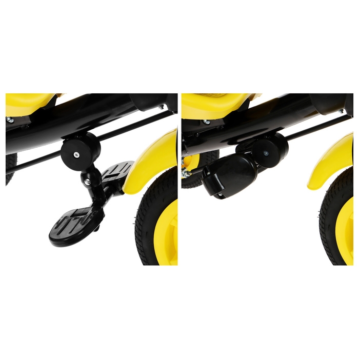 - Надувные резиновые колёса смягчают ход и обеспечивают сцепление с дорогой.