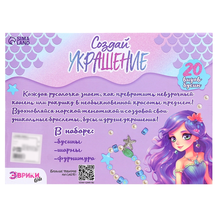 Набор для творчества «Создай украшение: Русалка», 20 видов бусин, 4 вида шармов