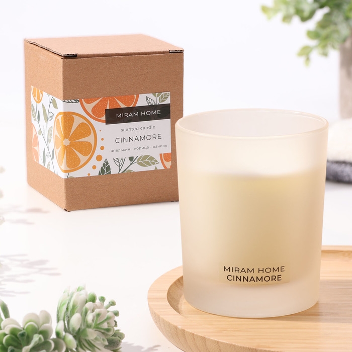 Свеча ароматическая в стекле "CINNAMORE", апельсин, корица и ваниль, 200 г