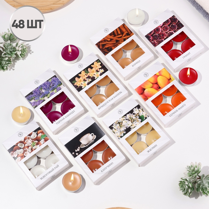 Свечи чайные ароматизированные в подарочных коробках, 48 шт