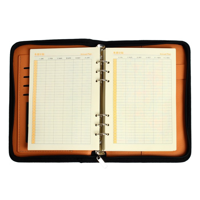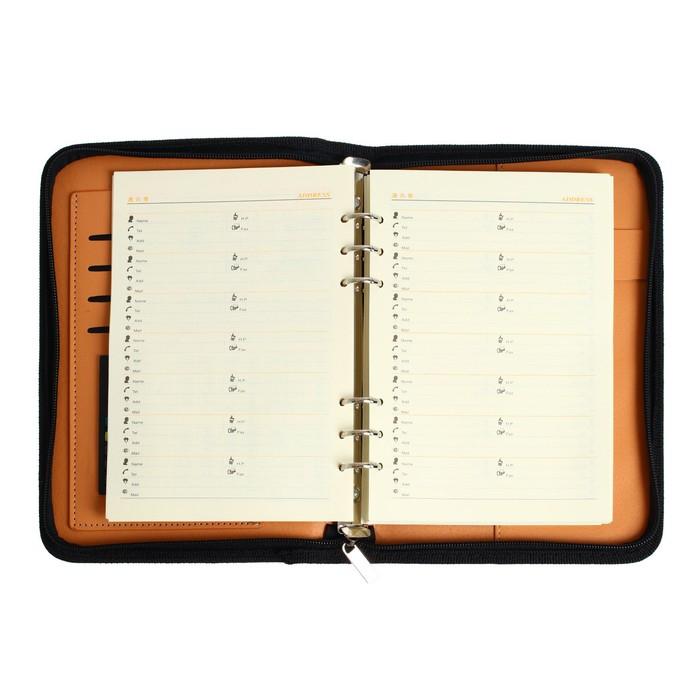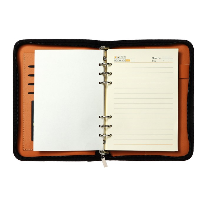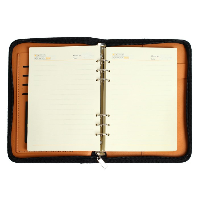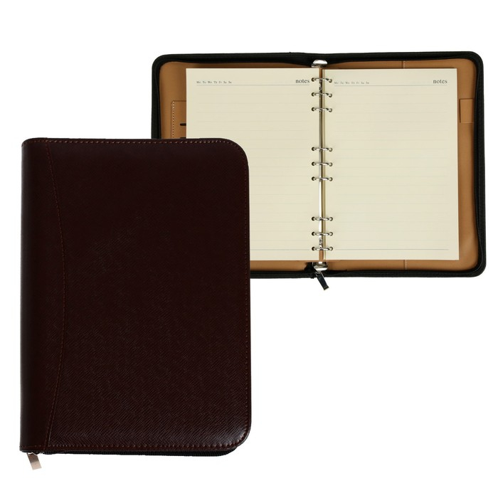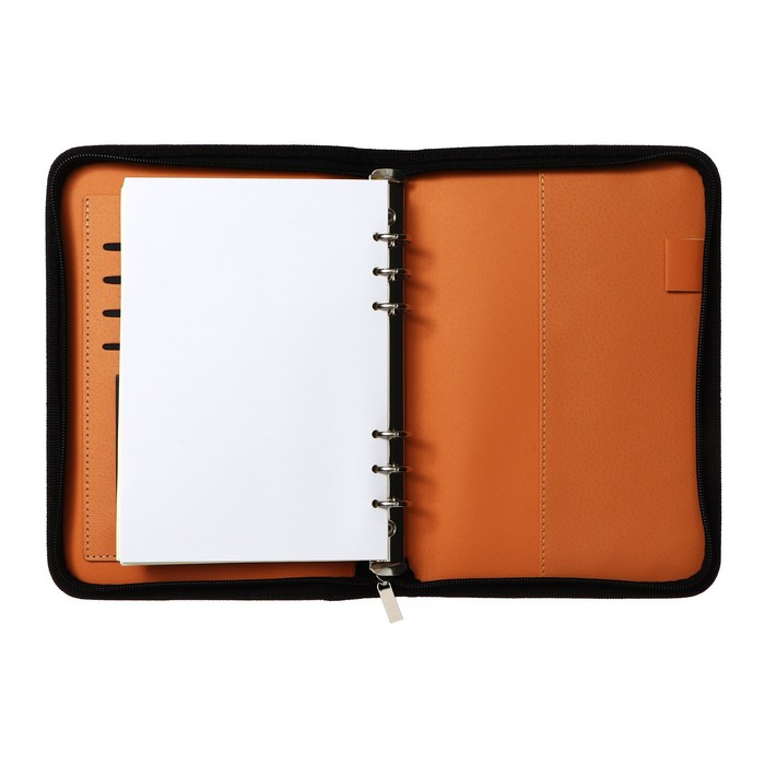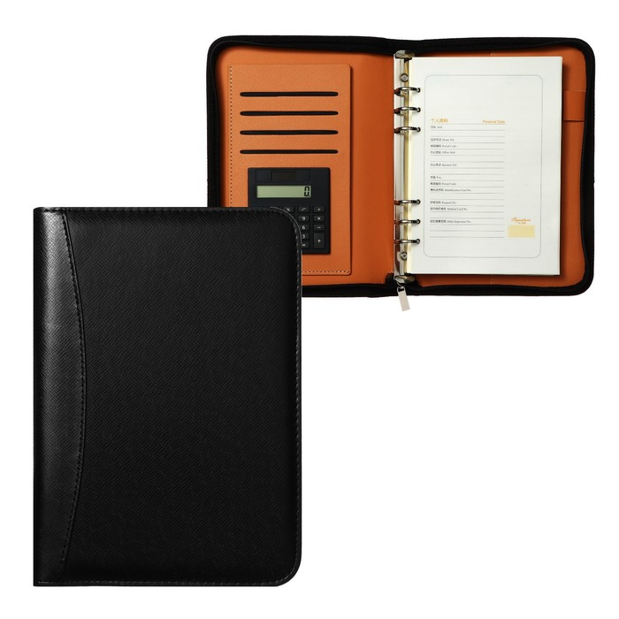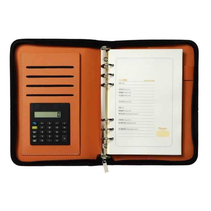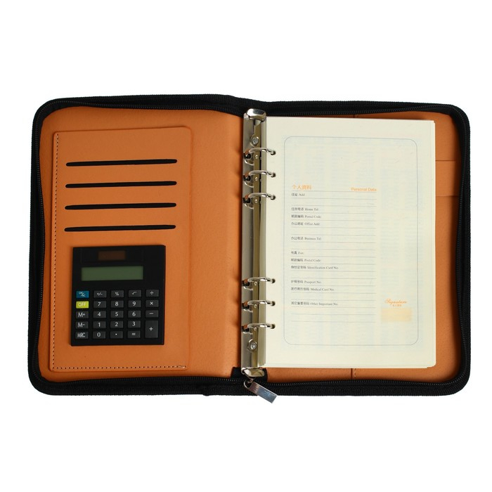 Органайзер на кольцах А5, 96 листов в линейку, на молнии с 3-х сторон, кожзам, с калькулятором, МИКС