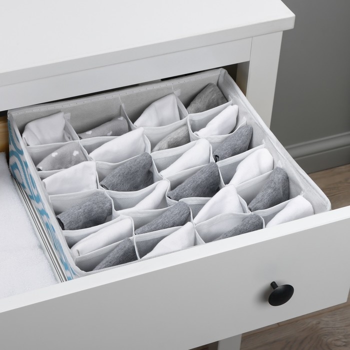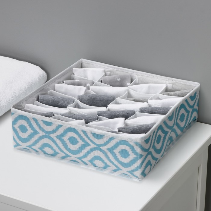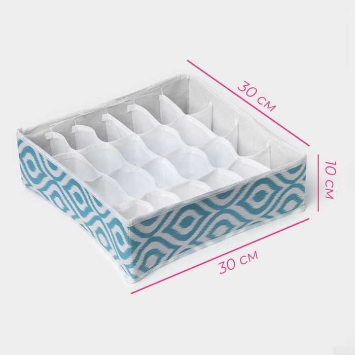 Органайзер для хранения белья Доляна «Лагуна», 24 ячейки, 30×30×10 см, цвет бирюзовый
