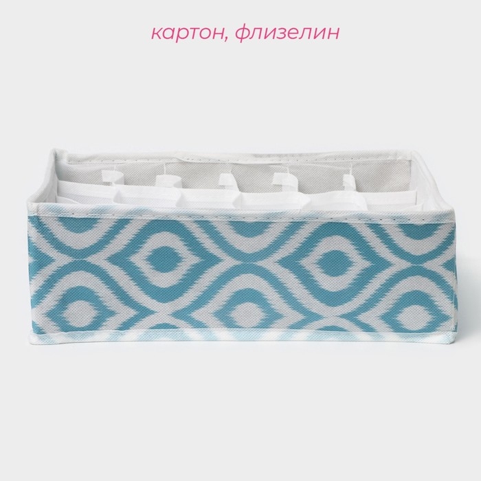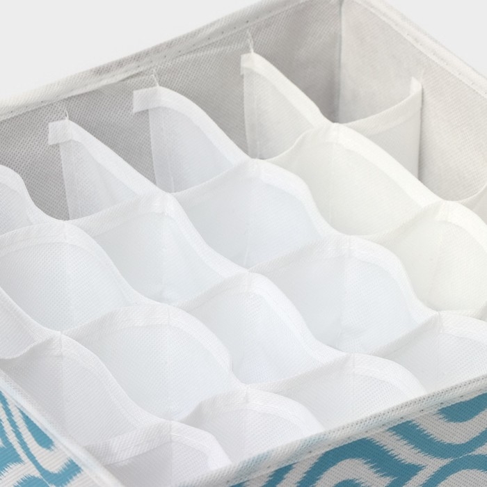 Органайзер для хранения белья Доляна «Тропики», 16 ячеек, 27×25×10 см, цвет синий