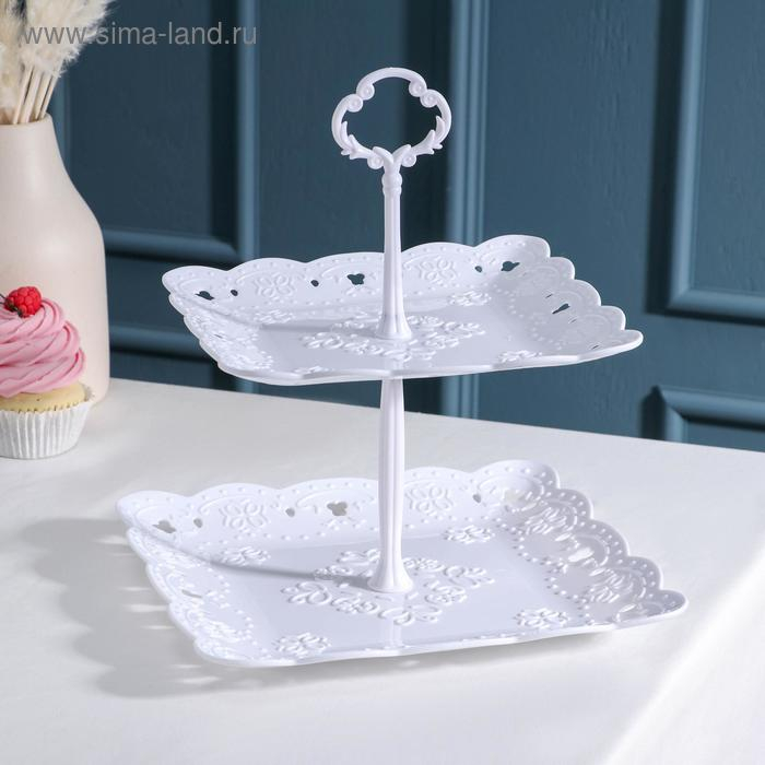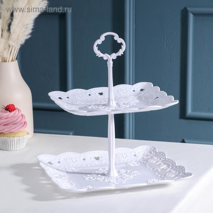 Этажерка-фруктовница квадратная «Вивьен», 2 яруса, 20×20 см, 24×24 см, цвет белый