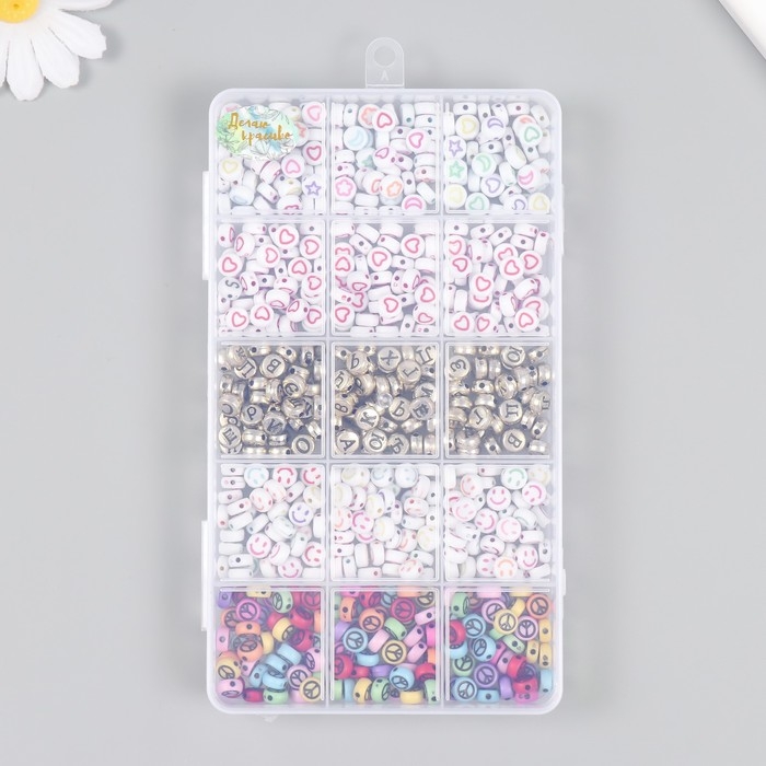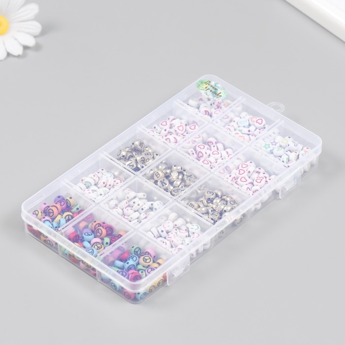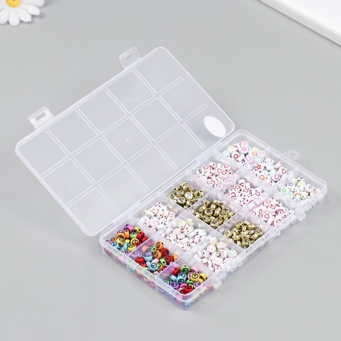 Бусины в шкатулке "Диски с рисунками" 15 делений 10х17,5х2 см