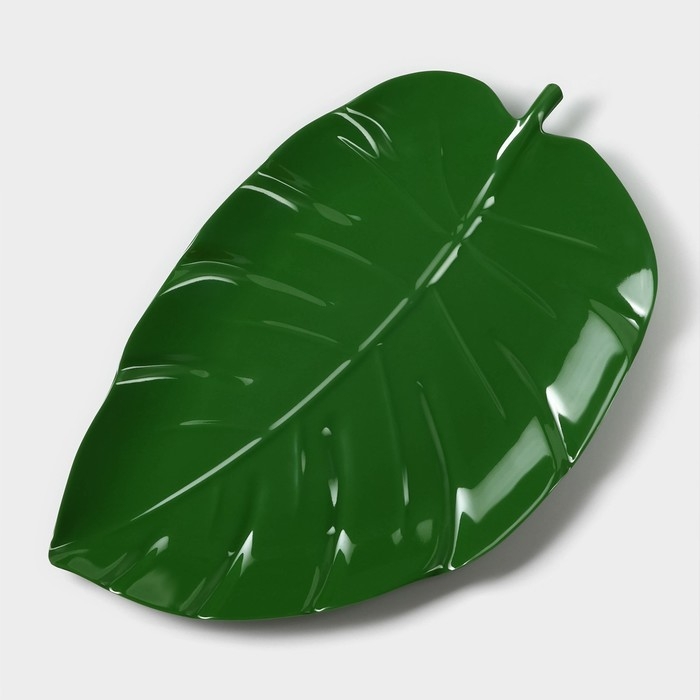 Блюдо для подачи «Лист», 37,5×23,5×2 см, цвет зелёный