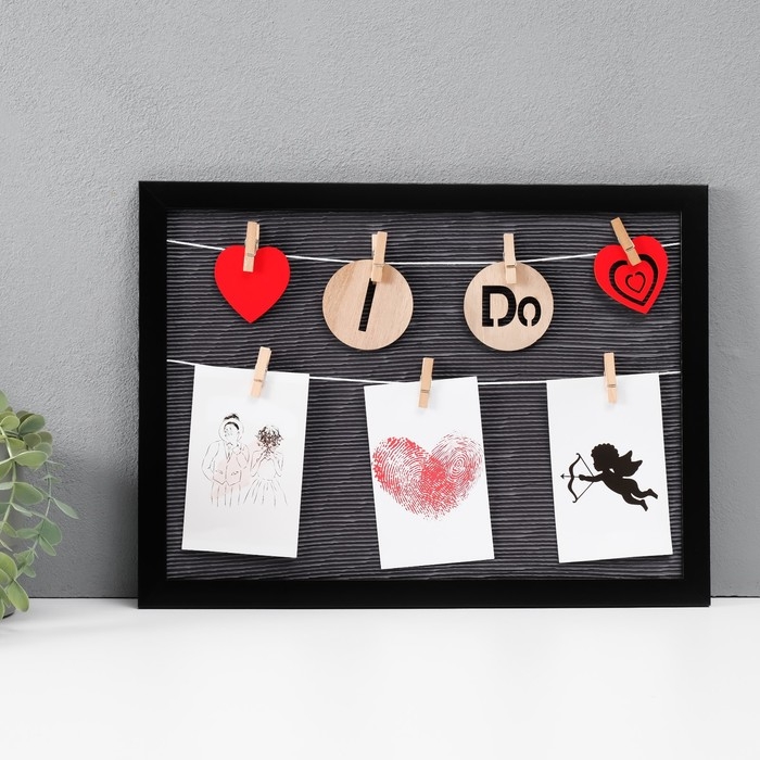 Фоторамка пластик на 3 фото 9х13 см "Я согласна" с прищепками, чёрная 40х30х1,5 см