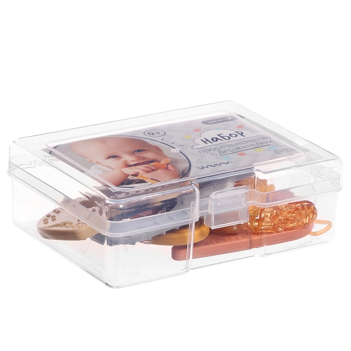 Набор прорезывателей для зубов «Зверята», бутылочка, силиконовый шнурок, в контейнере, 4 шт.