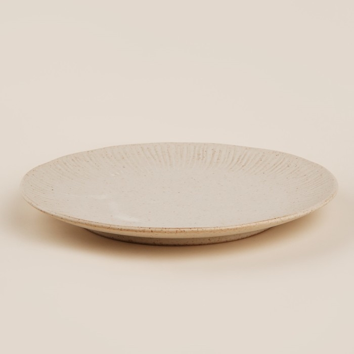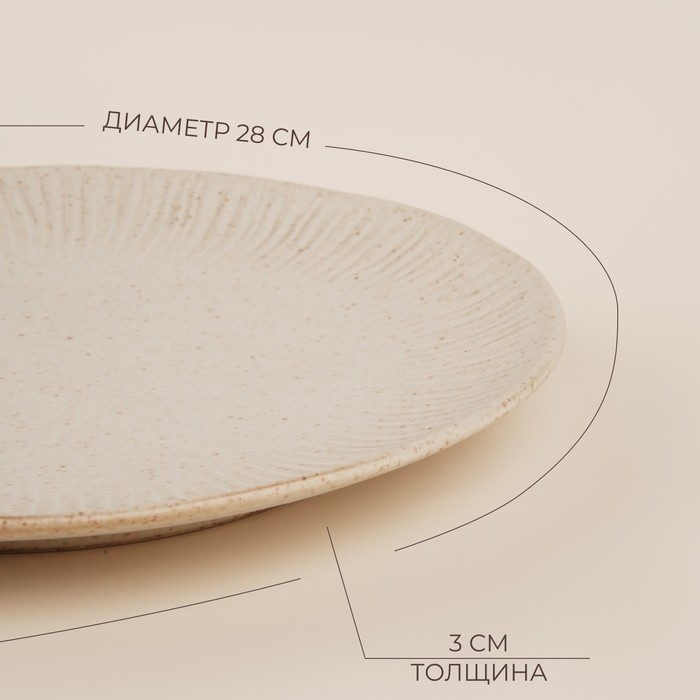 - Изысканный дизайн: бежевая керамическая тарелка с рельефной текстурой станет украшением любого стола.