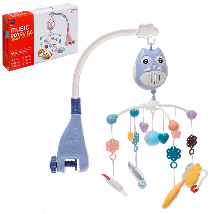Мобиль музыкальный «Песенки совушки», на батарейках, цвет голубой