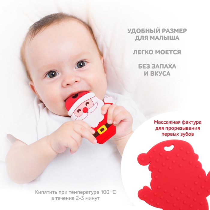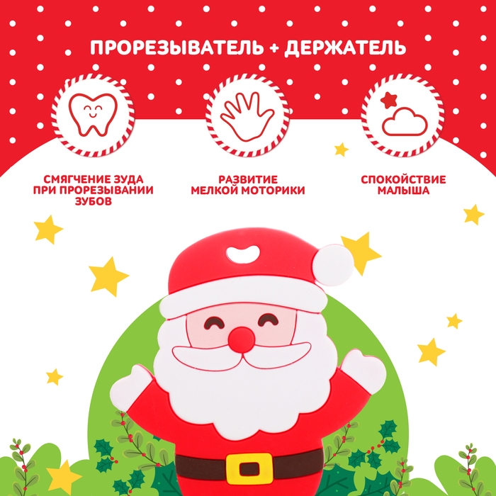 Новогодний прорезыватель для зубов «Дед Мороз», с держателем, цвет красный