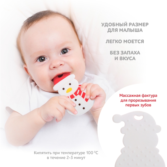 Новогодний прорезыватель для зубов «Снеговик», с держателем, цвет белый