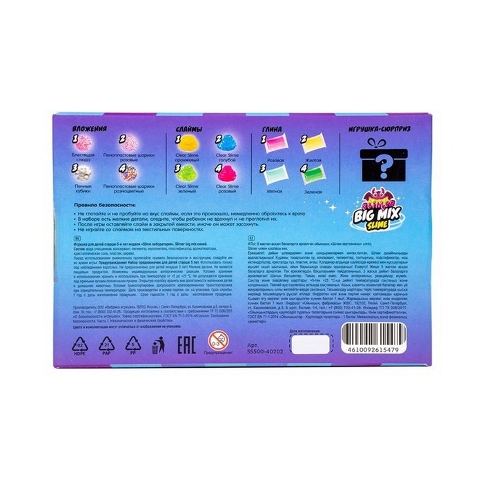 Слайм лаборатория «Slimer big mix» — это отличный способ разнообразить досуг детей, способствовать их развитию и подарить им много радости и веселья. Смешивайте, экспериментируйте и наслаждайтесь процессом создания новых уникальных слаймов!