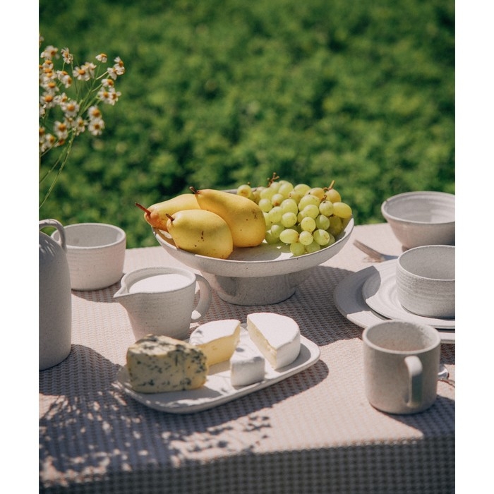 Позвольте вашему столу засиять элегантностью с блюдом для подачи «Арена Бланка». Это изысканное изделие из керамики идеально подходит для сервировки закусок, десертов и других деликатесов, придавая вашему столу особый шик.