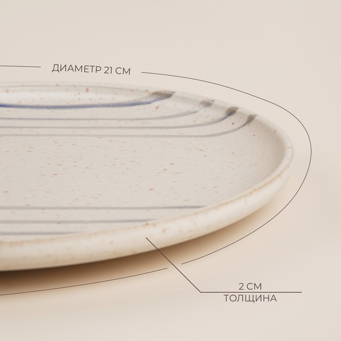 Основное преимущество этой тарелки заключается в ее универсальности. Она создана из высококачественной керамики, что гарантирует долговечность и устойчивость к механическим повреждениям. Гладкая текстура и наличие рисунка в виде полосок добавляют изысканности, что делает эту тарелку отличным выбором для любого стиля интерьера — от минимализма до классики.