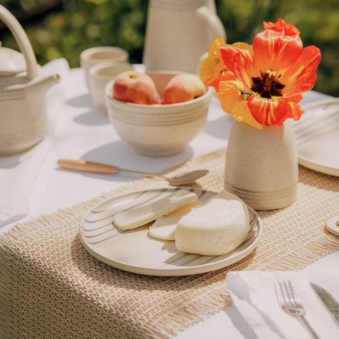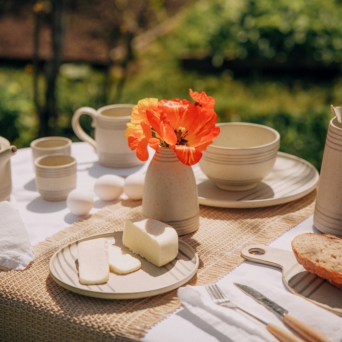 - Изысканный дизайн: бежевый цвет и полосатый узор создают теплую и уютную атмосферу, делая каждый прием пищи особенным.