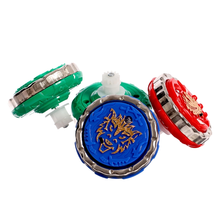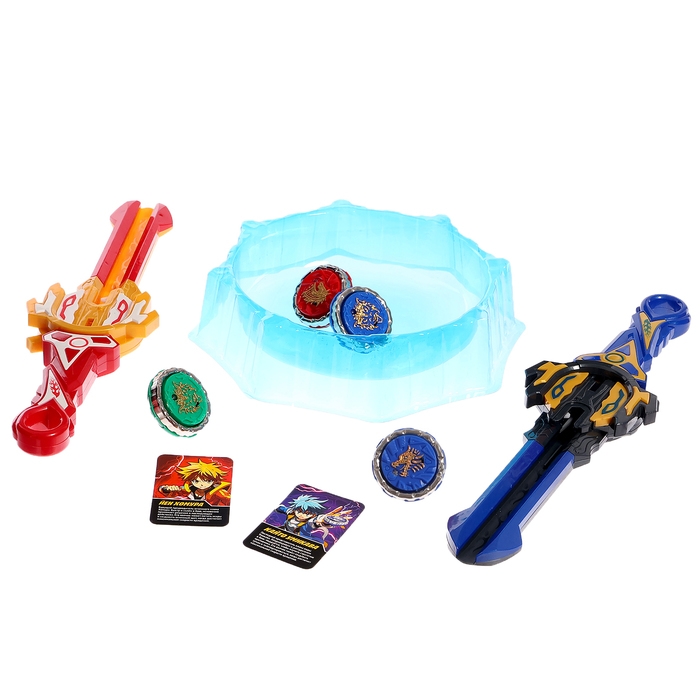 - В наборе 4 волчка, 2 устройства для запуска, арена: малыш сможет устроить настоящие соревнования.
