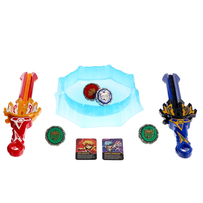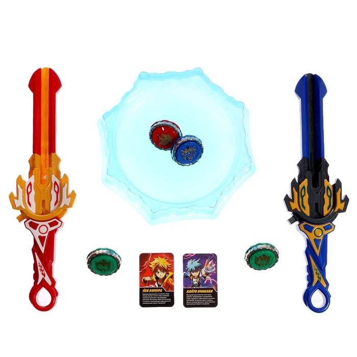 Набор волчков с мечом ULTRA SPIN «Сражение гладиаторов», 4 волчка, 2 устройства запуска, арена