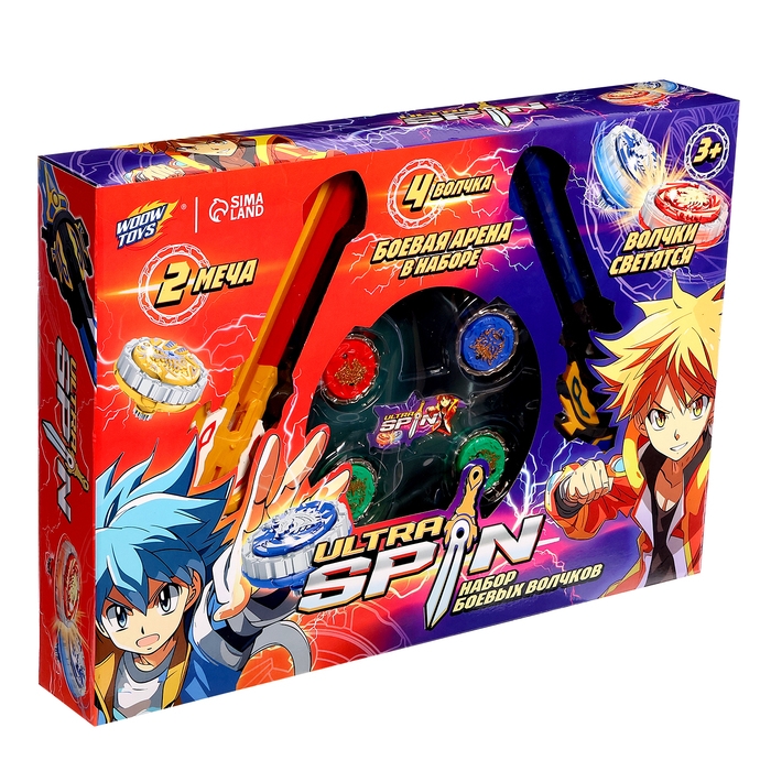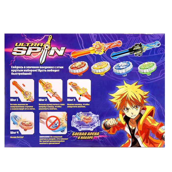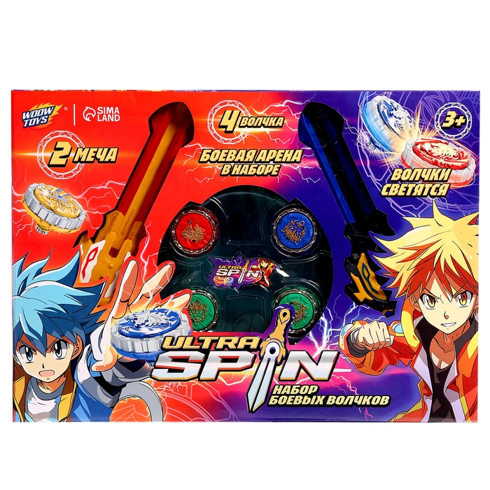 Набор боевых волчков ULTRA SPIN, 2 запуска, 4 волчка, 1 арена