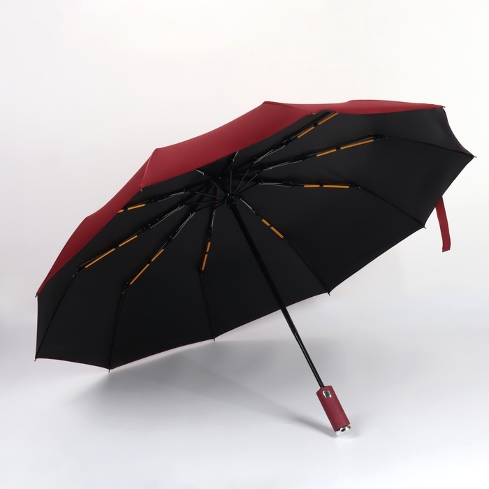 Зонт автоматический «Однотон», с фонарем, 3 сложения, 10 спиц, R = 51/58 см, D = 116 см, цвет бордовый