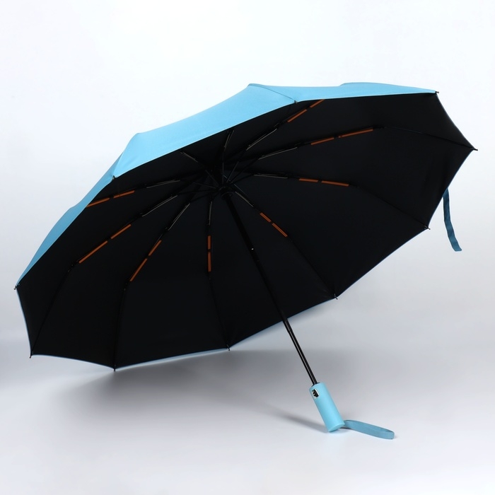 Зонт автоматический «Однотон», 3 сложения, 10 спиц, R = 51/58 см, D = 116 см, цвет голубой
