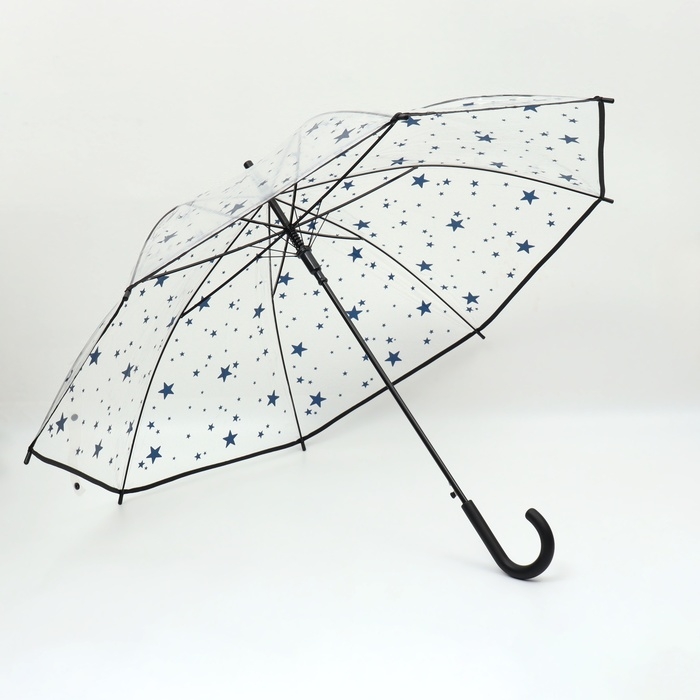 Зонт - трость полуавтоматический «Узор», 8 спиц, R = 54/60 см, D = 120 см, цвет прозрачный/синий