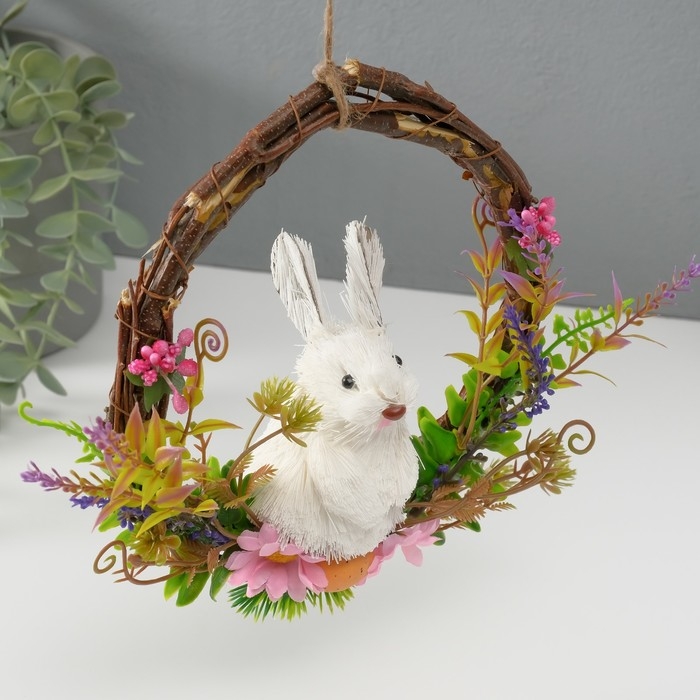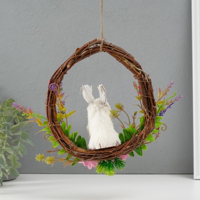 Сувенир "Белый зайка в венке с цветами" 17,5х7,5х19,5 см