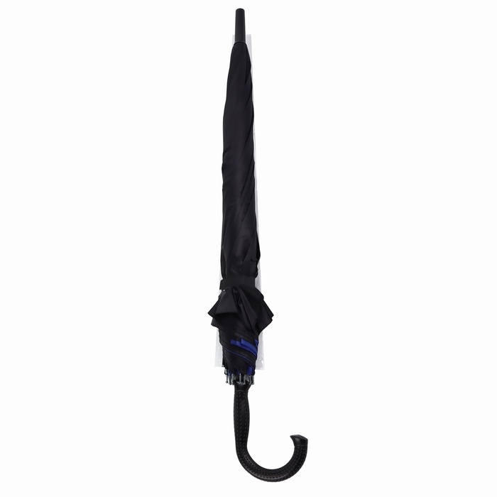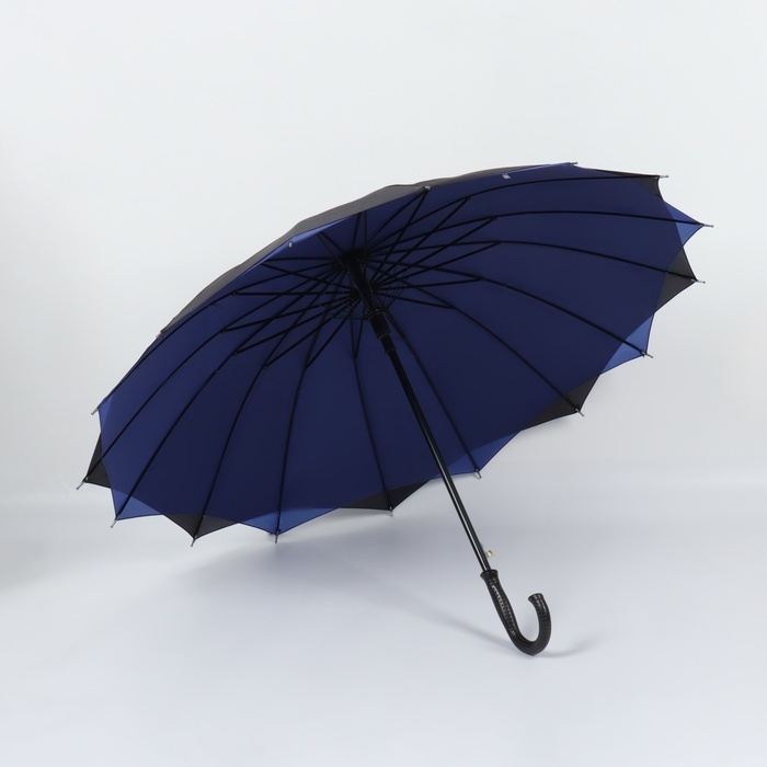 Зонт - трость полуавтоматический «Однотонный», двухслойный, 16 спиц, R = 52/60 см, D = 120 см, цвет чёрный/синий