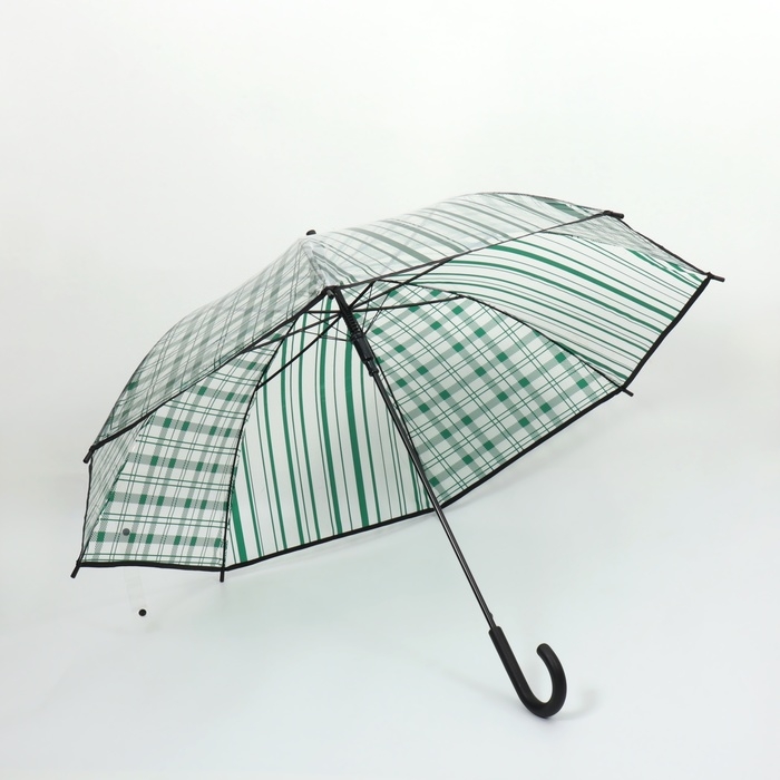 Зонт - трость полуавтоматический «Клетка», 8 спиц, R = 54/60 см, D = 120 см, цвет прозрачный/изумрудный