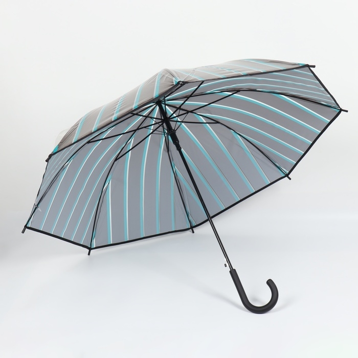 Зонт - трость полуавтоматический «Полосы», 8 спиц, R = 54/60 см, D = 120 см, цвет серый/зелёный