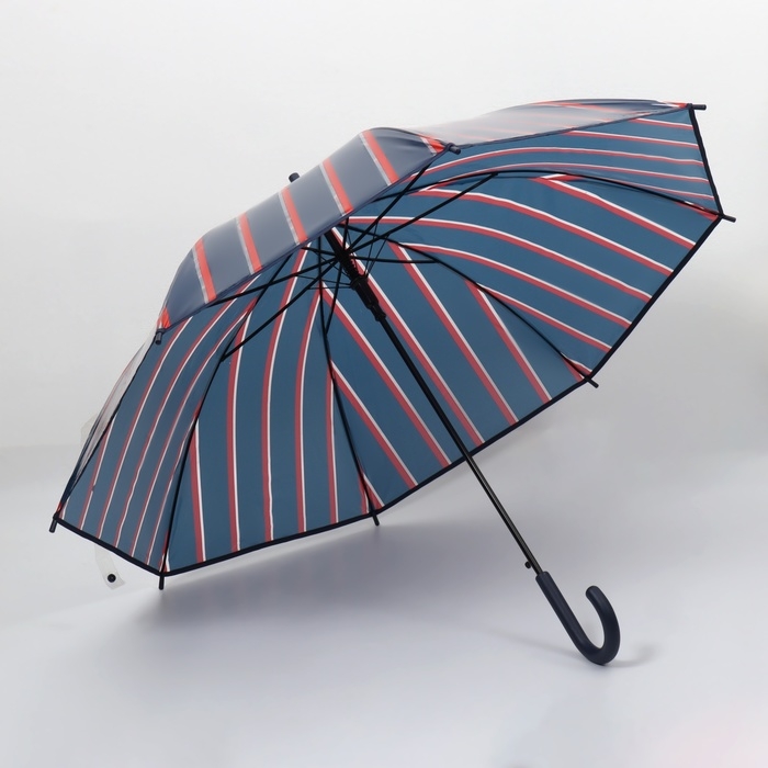 Зонт - трость полуавтоматический «Полосы», 8 спиц, R = 54/60 см, D = 120 см, цвет синий/красный