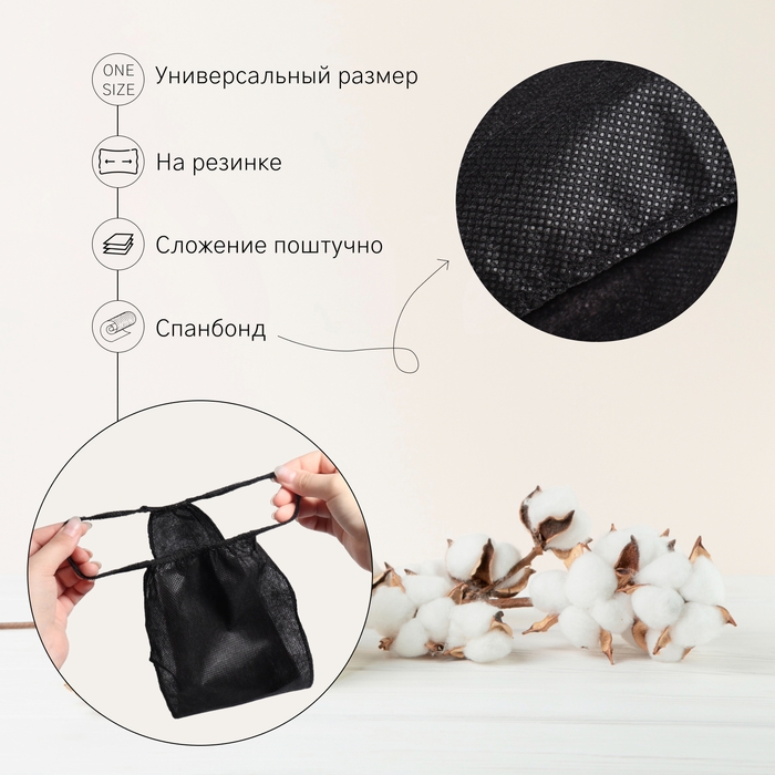 Набор одноразовых трусов, танга, универсальные, 50 шт, цвет чёрный