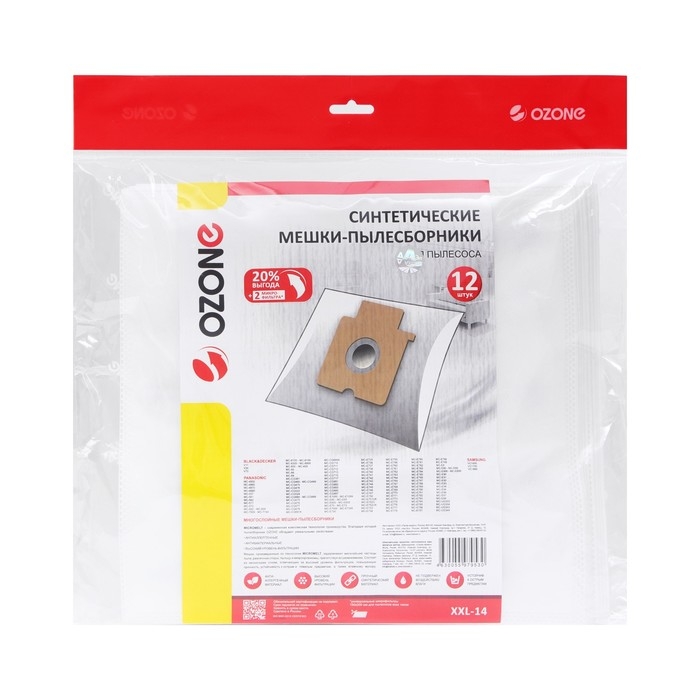 Мешок-пылесборник XXL-14 Ozone синтетические для пылесоса, 12 шт + 2 микрофильтра