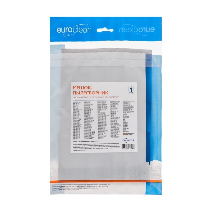 Мешок-пылесборник EUR-02R Euroclean — это многоразовое изделие, которое подходит для большинства моделей пылесосов.