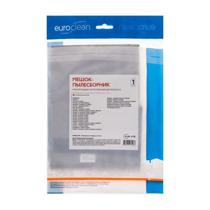Мешок-пылесборник EUR-31R Euroclean — это многоразовое изделие, предназначенное для использования в пылесосах. Он изготовлен из прочного и долговечного материала, который обеспечивает эффективную фильтрацию воздуха от пыли и грязи.