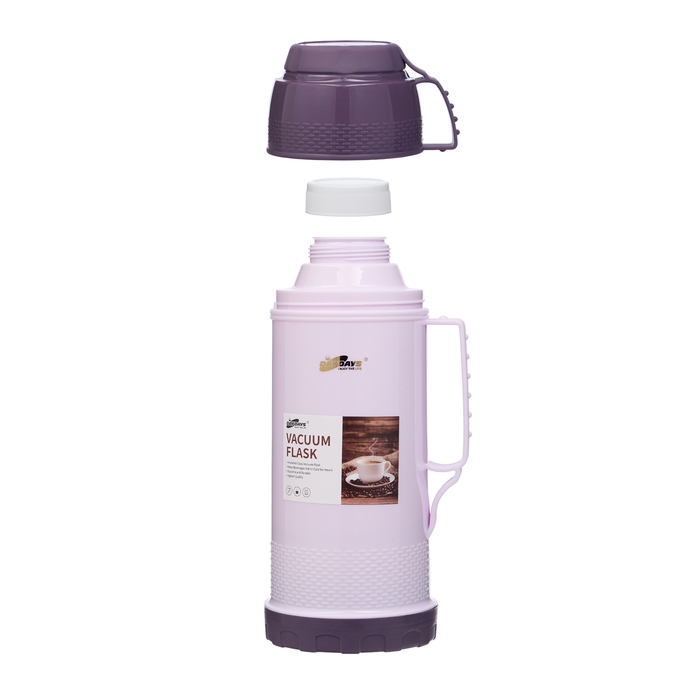 Термос 1.8 л, со стеклянной колбой, сохраняет тепло 12 ч, с кружкой, сиреневый